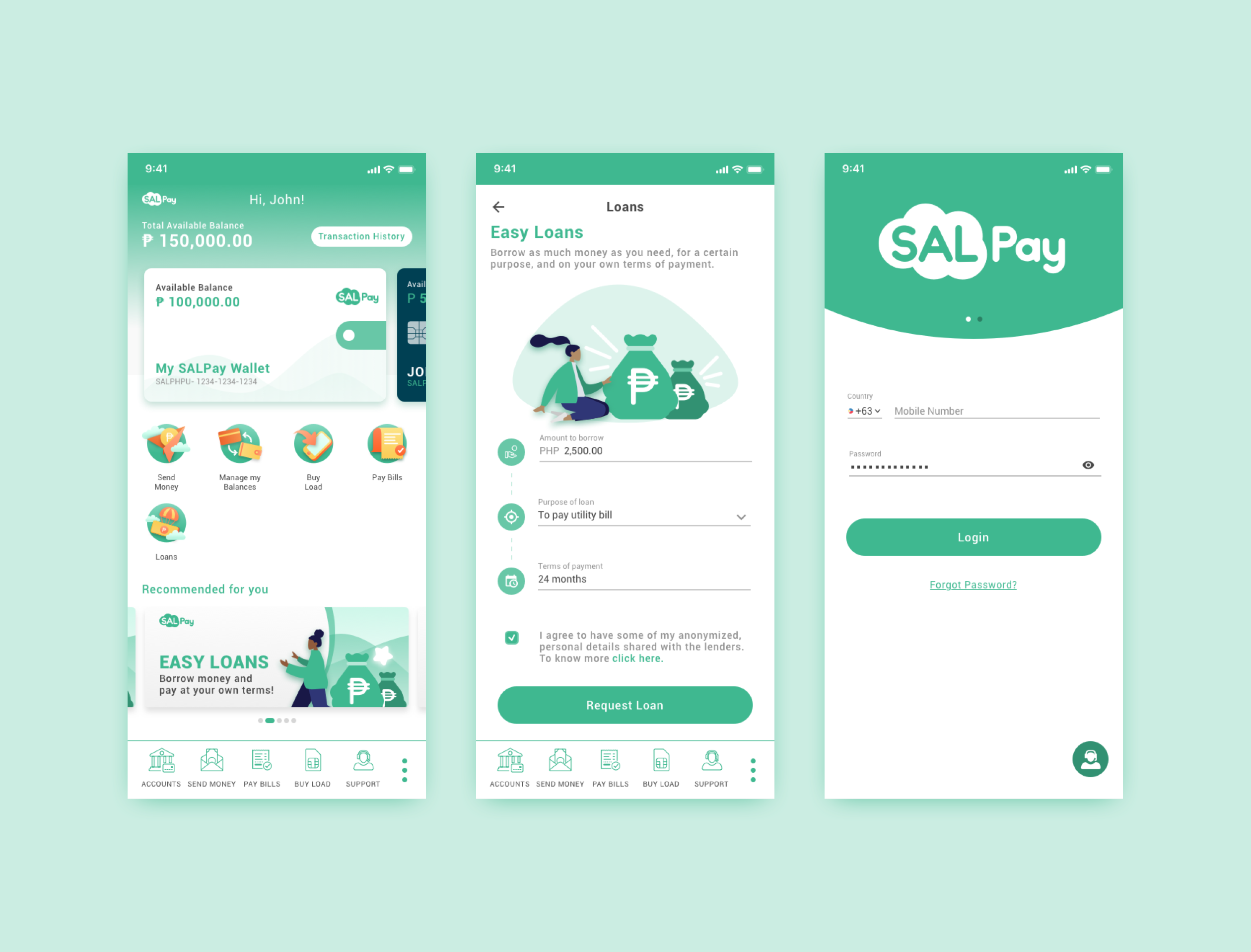 SALPay provides you tools to manage your finances, pay your bills, shop, save, and apply for loans under one application. SALPay is connected with Salarium, allowing for the transition from payroll to payout more seamless and hassle-free.